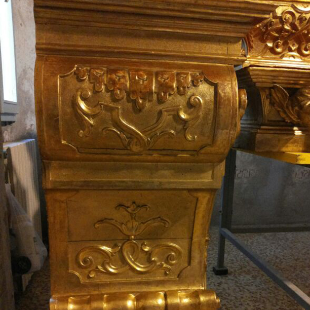 Data la sua natura è un materiale particolarmente esposto al degrado, il suo restauro deve indagare dapprima le tecniche costruttive ed artistiche che lo caratterizzano e la sua collocazione nel tempo. Si procederà con metodologia conservativa o integrativa, la prima interverrà sul manufatto solo con opere di consolidamento delle parti esistenti salvaguardando i “segni e l’usura” del tempo; la seconda opererà attraverso la ricostruzione degli elementi necessari all’opera al fine di riconferire la corretta funzionalità e lettura d’insieme nel rispetto della storicità dell’opera. Le operazioni di pulitura ed integrazione delle finiture saranno sempre volte al rispetto delle patine originali.